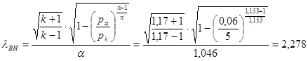 также определяется расчетом с помощью таблиц газодинамических функций. В первом приближении можно принять ![]()