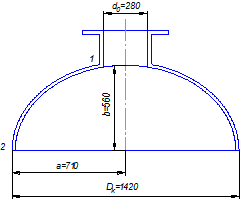 Для переднего днища, работающего в условиях высоких температур, но небольших скоростей движения газов (![]()