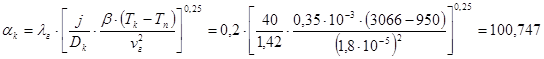 коэффициент вязкости продуктов сгорания. В первом приближении принимаем