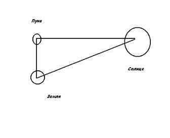Зато он успешно модифицировал метод Аристарха, позволяющий определить расстояние до Луны и Солнца. Пространственное расположение Солнца, Земли и Луны во время лунного затмения, когда проводились наблюдения.