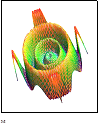 Сферически вихревая волна представляет собой симбиоз сферического вихря (смотри рис. слева) и сферической волны (смотри объемную модель сферической волны рис. справа. Видны три сферы, на которых располагаются микрообъекты в виде поверхностных волн.