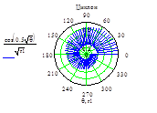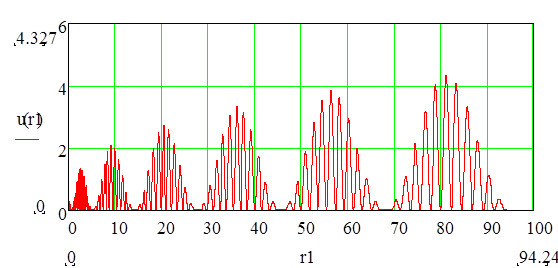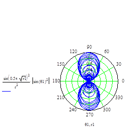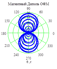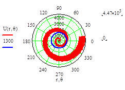 Рис. График дипольной (интенсивности) силы возникшей вследствие воздействия на мельчайшие микрообъекты вихря центробежной и интенсивности объемной сферическивихревой волны в физическом поле ОФМ в полярной системе координат.