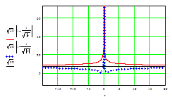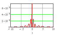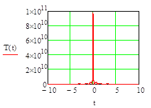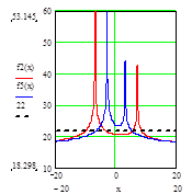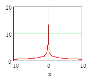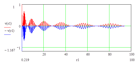 Рассеянная масса вещественного и эфирного вихрей. Выше на графике показана нижняя гладкая кривая с центральной областью, входящей во внутрь верхнего пика).