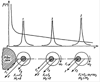 Напомним! Объемно-неподвижная сферически вихревая волна как единая система вращается вокруг оси ОФМ, и состоит из неисчислимого количества микрообъектов. В связи с их вращением в каждом микрообъекте возникает центробежная сила. Поэтому в процессе вращения ОФМ на каждую микрочастицу действуют две силы - сила объемной сферически вихревой волныFцсил ( r, k) и центробежная сила Fцб ( r, k,θ)