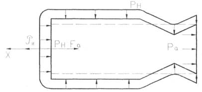 Тяга реактивного двигателя является равнодействующей сил давления газов на внутренние и наружные поверхности камеры двигателя. Она возникает в результате преобразования химической энергии топлива в кинетическую энергию, истекающих из камеры, продуктов сгорания.