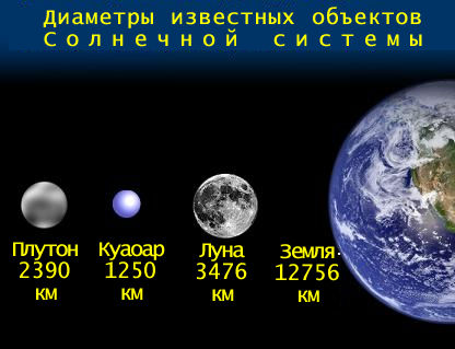 Юпитер — крупнейшая из планет. Его диаметр (142 800 км) в 11 раз превышает земной. Плутон (девятая от Солнца планета) — самая маленькая, диаметром всего 2284 км.