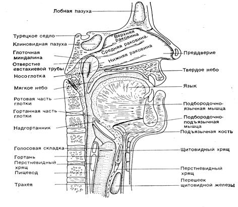 Начальный отдел дыхательного пути. От ноздрей воздух проходит по носовым ходам, выстланным слизистым и реснитчатым эпителием |