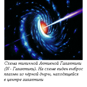 Компактные далекие галактики, обладающие мощным нетепловым радиоизлучением, называются N-галактиками (или Активными Галактиками).