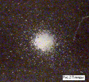 по размеру, как правило, больше рассеянных и содержат сотни тысяч звезд. Все они очень далеки от нас. Лишь одно-два можно заметить невооруженным глазом или в бинокль, но даже они из-за громадного расстояния видны как крошечные светящиеся пятнышки. На фотографиях шаровые скопления обычно выглядят как целый рой огромного числа звезд (рис. 3).
