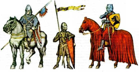 юного возраста. Недаром мальчиков из рыцарских семей с детства приучали носить доспехи — известны полные комплекты для 6—8-летних детей. Следовательно, тяжеловооружённый всадник должен быть богатым человеком, располагающим временем. Крупные владетели могли содержать при дворе лишь очень небольшое число таких воинов. А где взять остальных? Ведь крепкий крестьянин, если и имеет 45 коров, то не отдаст их за груду железа и красивого, но не годного для хозяйства коня. Выход нашёлся: король обязывал мелких землевладельцев работать определённое время на крупного, снабжать его нужным количеством продуктов и ремесленных изделий, а тот должен был быть готов определённое количество дней в году служить королю в качестве тяжеловооружённого всадника.