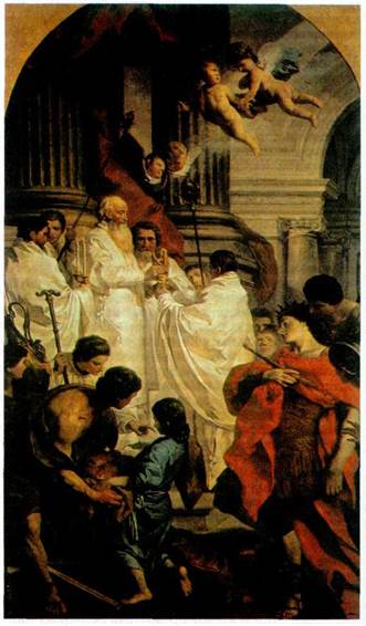 Но даже это не могло принизить роль и могущество епископов. Они не раз противостояли власти королей, соперничая с ними в силе и влиянии. Так, безраздельно господствуя в своих владениях, получив по милости короля Оттона I духовную и светскую власть, германские епископы в XI в. встали в оппозицию императорской власти. И ещё долго в Германии существовали на правах самостоятельных государств архиепископства Кёльн, Майнц, Бремен, Трир. Архиепископ Кентерберийский (глава английской церкви) Томас Бекет, в 1170 г. не позволивший королю Англии прибрать к рукам церковные суды, был убит. Но самому Генриху II пришлось жестоко (в буквальном смысле этого слова) каяться в содеянном — лёжа долгие часы на холодной могильной плите убиенного им священника. Папа римский пригрозил королю интердиктом (отлучением от церкви). Интердикт могли налагать на зарвавшихся светских властителей и сами епископы. И это было грозным оружием.