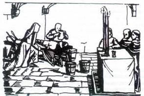 Случалось, что неподалёку селились ремесленники: ткачи; мастера, ковавшие оружие, делавшие конскую сбрую — те, чьи изделия больше всего нужны сеньору и его слугам. И для них замок становился надёжным убежищем, а его хозяин — господином. К замку привозили свой товар купцы — сеньор щедро платил за заморские шелка и пряности. Правда, для проезда по его владениям торговец сам должен был не единожды раскошелиться: проехал по мосту — плати, перевёз тебя паромщик