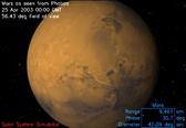 Марс. Четвертая от солнца планета, вдвое меньше Земли. Есть 2 спутника Фобос и Деймос. Средняя температура поверхности равна –28. В атмосфере преобладает углекислый газ. Ландшафт представляет собой пустынную равнину, продуваемую ветрами и усеянную зубчатыми скалами. На поверхности обнаружен высочайший пик, названный Олимпом. Он втрое выше Эвереста и достигает в ширину 600 км.