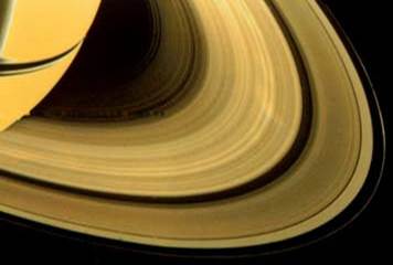 Бортовые камеры «Вояджеров» показали, что с близкого расстояния кольца Сатурна похожи на граммофонную пластинку: они как бы расслоены на тысячи отдельных узких колечек с темными прогалинами между ними. Прогалин так много, что объяснить их резонансами с периодами обращения спутников Сатурна уже невозможно.
