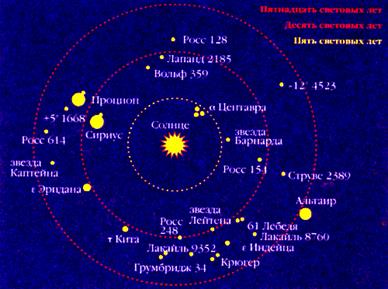 Окрестности Солнца - это объем Галактики, в котором доступными современной астрономии средствами можно наблюдать и изучать звезды разных типов. Как показывает практика, это "шар", который содержит около 1,5 тысяч звезд. Радиус этого шара - 20 парсек. В настоящее время в окрестностях Солнца исследованы все или почти все звезды за исключением совсем карликовых, излучающих очень мало света. В непосредственных окрестностях Солнца - шаре радиусом около 5 парсек - исследованы абсолютно все звезды - их около 100.