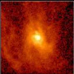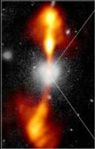 М106 - не единственная галактика, где подозревается черная дыра. В туманности Андромеды, скорее всего, тоже есть и примерно такая же по массе - 37 миллионов Солнц. Предполагается, что и в галактике М87 - чрезвычайно интенсивном источнике радиоизлучения - обнаружена черная дыра, в которой сосредоточено 2 миллиарда масс Солнца! Рис. 1 Галактика М87