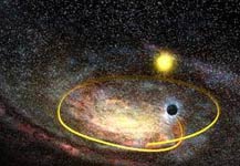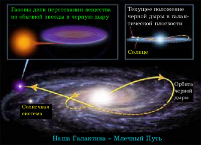 | Странствующая пара: черная дыра и ее звезда (слева - путь через Млечный путь). |
