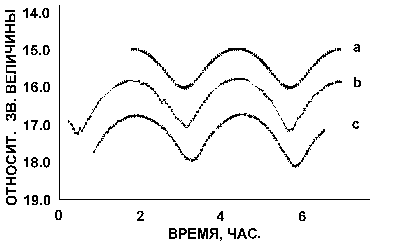 - изменение наклонов ветвей кривых блеска от периода к периоду, обусловленные различными моментами начала и конца затмений