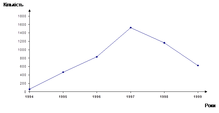 Мал. 4. Динаміка злиття (поглинання) підприємств в Україні в період з 1994 по 1999 роки.