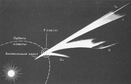 вдоль таких хвостов с огромным ускорением проносятся сгустки ионизованной кометной материи - облачные образования.