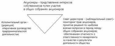 Управление корпорацией в каждой стране определяется: законодательством, регулирующим права и обязанности всех участвующих сторон; историческим опытом формирования структур управления в данной стране; менталитетом; уставом каждого корпорации.