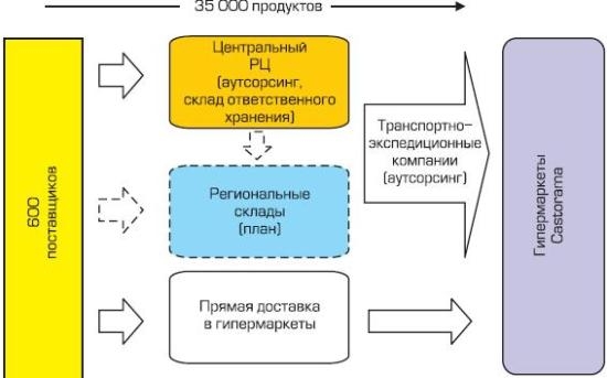 Современные SCM подразумевают оптимальное и синхронизированное планирование товародвижения, причем в обоих направлениях. Структура организации распределения товара в компании Castorama отражена на рис. 1.