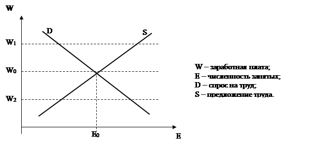 Существуют также неоклассическая и кейнсианская концепции занятости по-разному объясняющие процессы на рынке труда. В первой концепции в качестве цены на труд выступает ставка реальной заработной платы, во второй - спрос на труд определяется не ценой труда, а величиной эффективного спроса на благо. В кейнсианской концепции равновесие на рынке труда устанавливается при наличии безработицы. [6] То есть безработица - неотъемлимый атрибут рыночной экономики и полной занятости достичь невозможно.