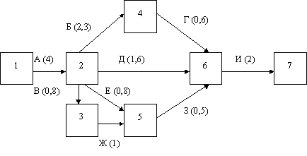 Примерный сетевой график показан на схеме 1: какие процессы, в какой очередности и в какие сроки должны быть осуществлены для реализации проекта. Исходные и результирующие данные в табл.1 и 2.