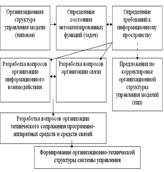 Между всеми выше составляющими ОСУ существуют сложные отношения взаимозависимости: изменения в каждой из них (числа элементов и уровней, количества и характера связей и полномочий работников) вызывают необходимость пересмотра всех остальных. Так, если руководством организации принято решение о введении в ОСУ нового органа, например, отдела маркетинга (функции которого ранее никто не выполнял), нужно одновременно дать ответ на следующие вопросы: какие задачи будет решать новый отдел, кому он будет непосредственно подчинен, какие органы и подразделения организации будут доводить до него необходимую информацию, на каких иерархических уровнях будет представлена новая служба, какими полномочиями наделяются работники нового отдела, какие формы связей должны быть установлены между новым отделом и другими отделами.