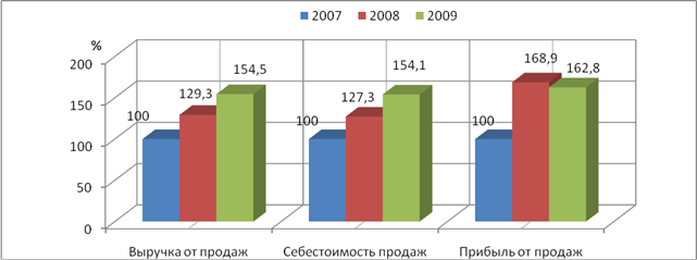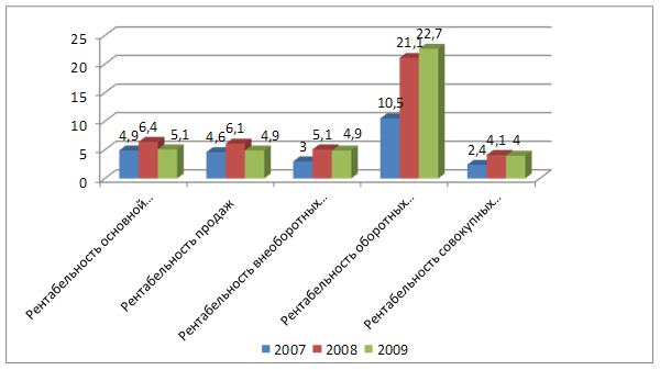 На основе анализа финансовых результатов деятельности предприятия можно сделать вывод о повышении эффективности деятельности в 2009 г. по сравнению с 2007 г. и снижение по сравнению с 2008 г.