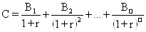 Текущая стоимость С потока ежегодных выгод (через Т) может быть рассчитана по формуле:
