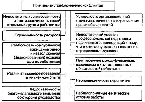 Причины, порождающие внутрифирменные конфликты, можно сгруппировать следующим образом (рис. 2).
