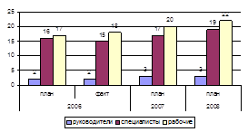 В 2007 г. планируется обучить 66 чел., в том числе руководителей – 6 чел., специалистов – 28 чел., рабочих – 32 чел. В 2008 г. планируется обучить 74 чел., в том числе руководителей – 8 чел., специалистов – 30 чел., рабочих – 36 чел.