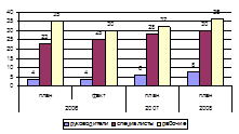 На основании данных расчета затрат по обучению персонала по менеджменту качества За период 2003-2005 гг. общее количество численности сотрудников видно, что снижается, в целом численность обучающихся снизилась на 70 чел. по отношению к уровню 2003 г. Среди категорий персонала, численность работников обучающихся среди специалистов и руководителей снизилась по сравнению с 2003 г. на 24 человека, а среди рабочих на 46 чел.
