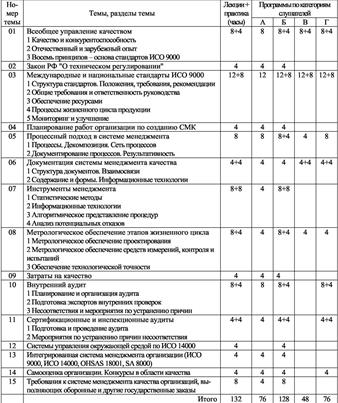 1 Подпрограмма А— руководящий состав; Б—работники служб качества, ОТК, метрологии; В—разработчики документации; Г—эксперты внутренних проверок (аудитов).