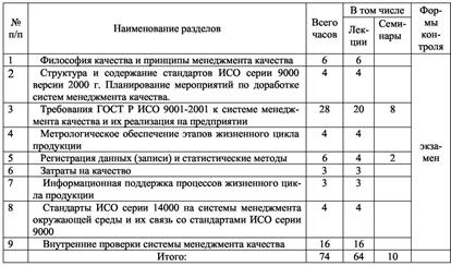 Программа учебного семинара "Системы менеджмента качества"
