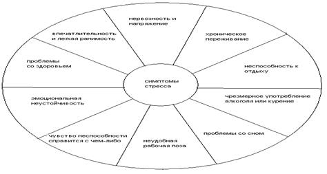 Неразрешимые и неуправляемые конфликты достаточно часто приводят к стрессам. Стресс – это явление, связанное с психикой человека, с нервным психологическим или физическим напряжением и приводящее к потере здоровья или даже смерти. Стресс – это состояние напряжения, возникающее у человека под влиянием сильного воздействия. Даже в наиболее прогрессивной и хорошо управляемой организации существуют такие ситуации и такие условия работы, которые вызывают стресс. Так, например, руководитель испытывает стресс, так как у него не хватает времени для выполнения всего объема запланированных работ. Возникает чувство беспокойства (стресс), когда ситуация выходит из-под контроля. Небольшие стрессы – это довольно обычное и часто встречающееся явление (повышенная раздражительность, бессонница перед ответственным событием). Незначительные стрессы неизбежны и почти безвредны, но чрезмерное напряжение сил создает проблемы для каждого человека и, соответственно, организацией. Физиологические признаки стресса - язва желудка, болезнь сердца, астма и т.п. Психологические его проявления – раздражительность, потеря аппетита, депрессия. Чрезмерные стрессы снижают работоспособность человека, значительно ухудшают его здоровье.