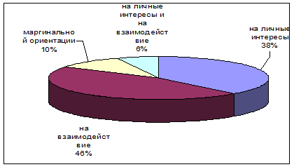 Меньше тех, кто направлен на личные интересы и еще меньше сотрудников с маргинальной ориентацией, выражающейся в импульсивных действиях и характеризующей инфантильных личностей.