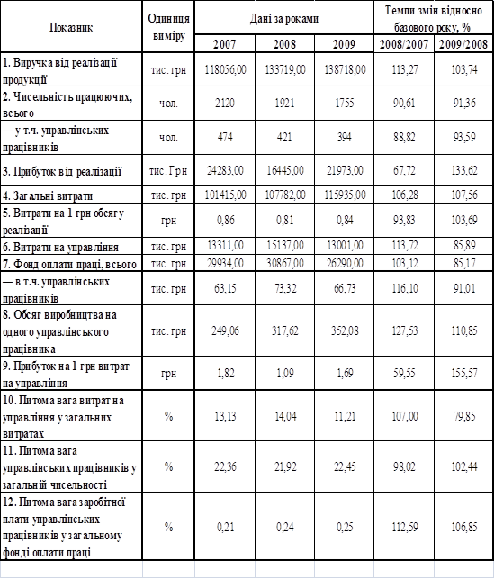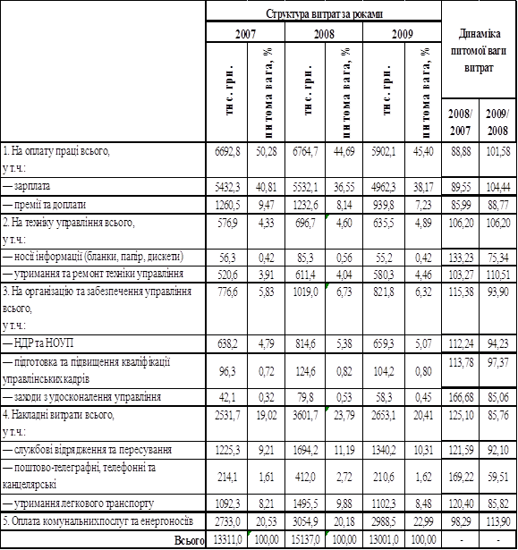 Таблиця 2.13 – Структура витрат на управління в динаміці за 2007-2009 рр