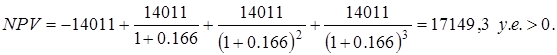 Норма прибыли проекта r = 0,166 - прибыльный проект |