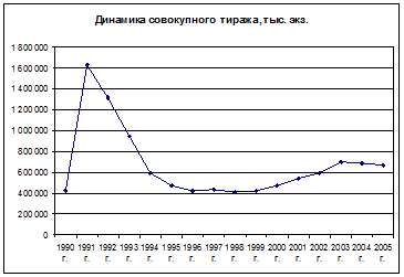 [24] Составлено по данным статистических сборников «Печать Российской Федерации» за 1991-2003 гг. Данные за 2004 г. приведены в: Кузнецов Б.А. Экономика и организация издательской деятельности – М: АСТ, АСТРЕЛЬ – С.21.