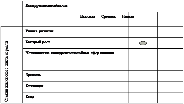 Матрица жизненного цикла предполагает размещение СХП в таких показателях, как конкурентоспособность - стадии жизненного цикла отрасли.