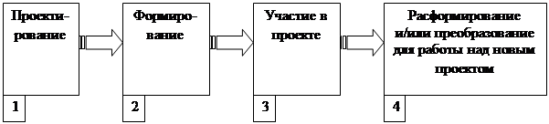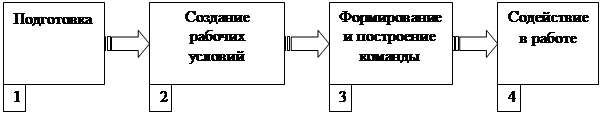 Чтобы правильно организовать работу команды, ее создание, по мнению одного из специалистов в области формирования команд, должно пройти четыре стадии:
