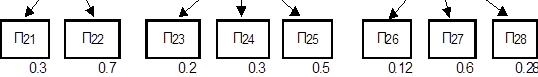 Для любой сети все работы можно записать в виде списка с указанием четырех значений времени для работ и их резервов. Один из возможных вариантов такой записи приведен в следующем примере: