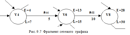 1. Ранний срок начала работы Es . Работа a46 не может начаться раньше наступления события V4 . Поэтому наиболее раннее время начала работы будет равно