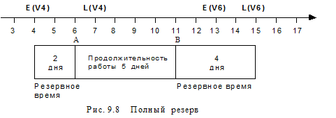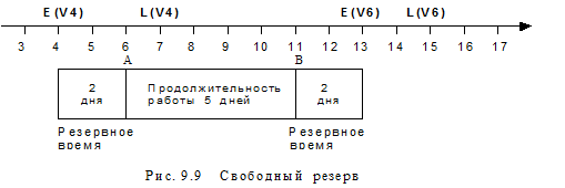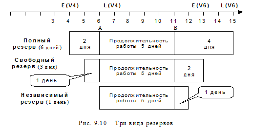 График на временной оси трех видов резервов . На примере работы a46 покажем, как все три вида резервов можно изобразить на графике с временной осью (рис. 9.10).
