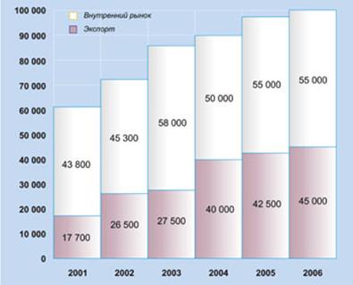 | Внутрішній ринок | 43 800 | 45 300 | 58 000 | 50 000 | 55 000 | 55 000 |
