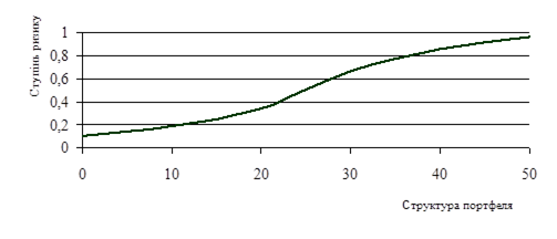 Рис. 3.8. Залежність “Структура портфеля – ступінь ризику”