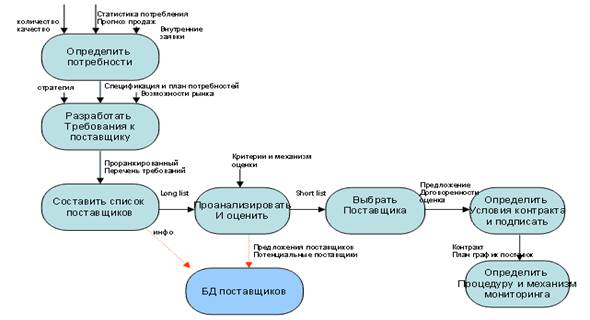 - сбор информации; - анализ потребности и возможностей (поставщика и покупателя); - выбор стратегии закупки (форм товароснабжения); - определение метода закупок; - оперативные решения, связанные с процессом товародвижения; - контроль; - анализ хода выполнения плана; - корректировка плана.