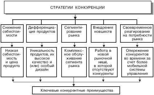 | Стратегии конкуренции | Ключевые конкурентные преимущества |